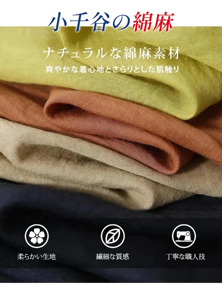小千谷以外には店舗なし!熟練職人の手作りで、小千谷最高品質のコットンリネンは涼しく快適。通気性と吸汗性は通常のコットンリネンの5倍。ゆったりシルエットで体型をカバーし、少なくとも10kgスリムに見せます。