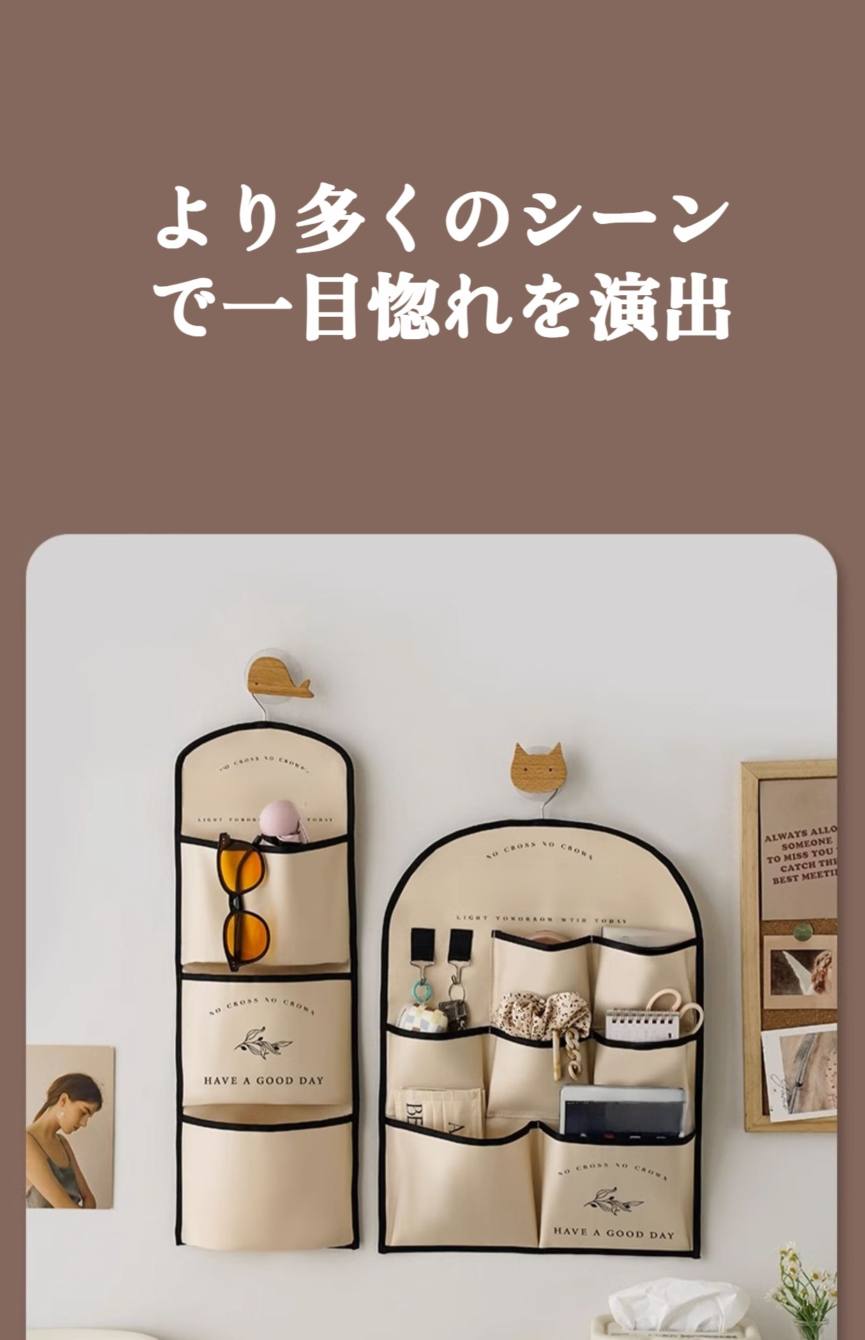布製吊り下げバッグ ベッドサイドドア収納 壁掛け収納バッグ クリエイティブ吊り下げ収納 多目的壁掛け収納バッグ