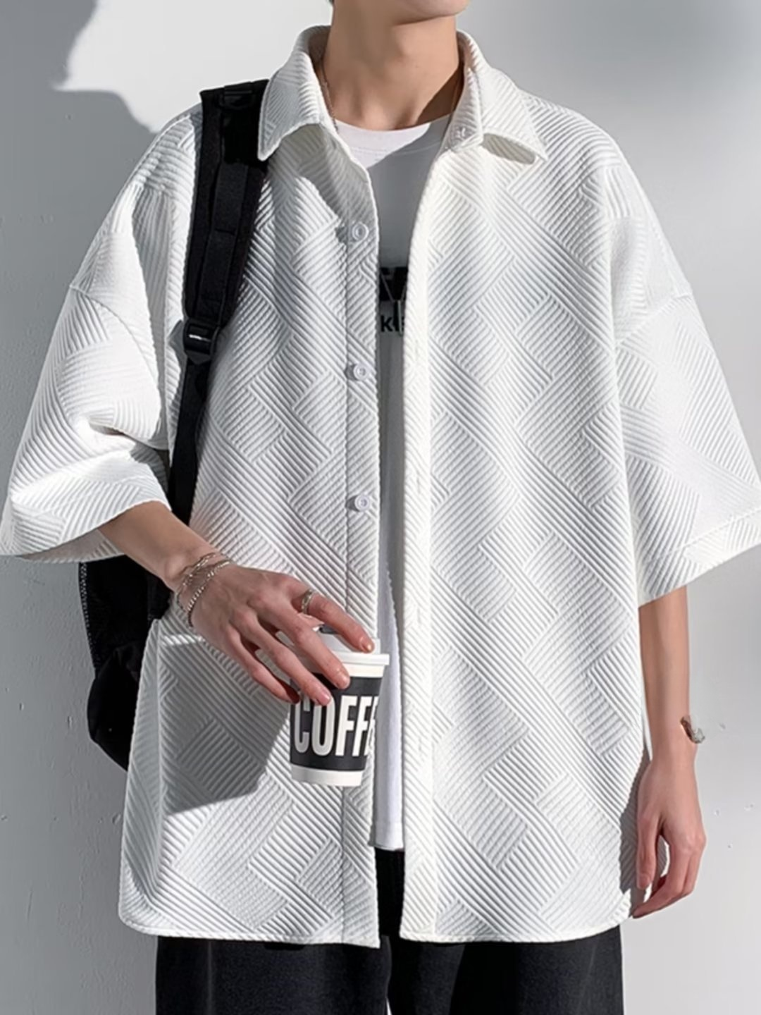レジャーに最適なワッフル素材半袖紳士服