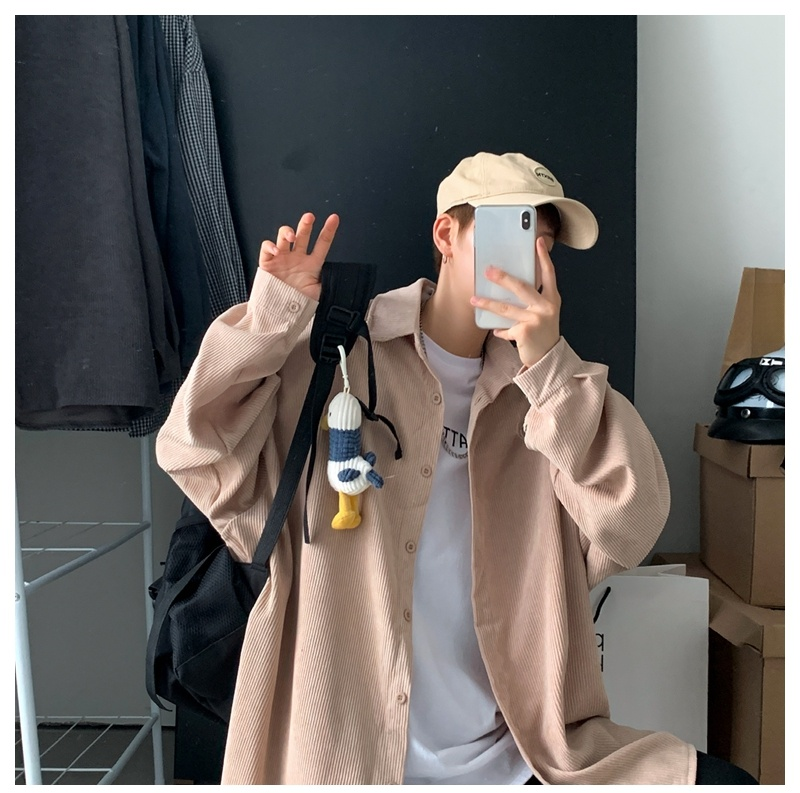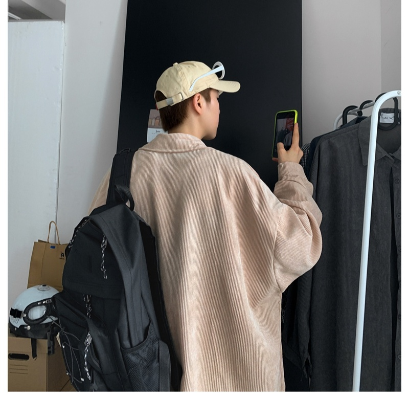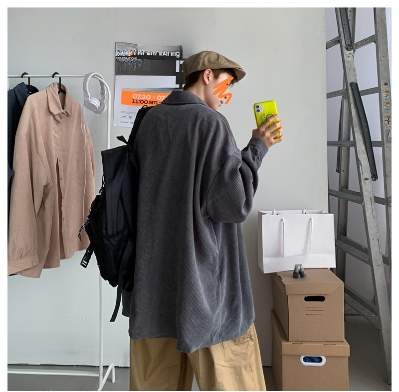 ティーンエイジャーのゆったり長袖コーデュロイシャツ ハンサムカジュアルシャツ秋ユニセックス個性シャツ