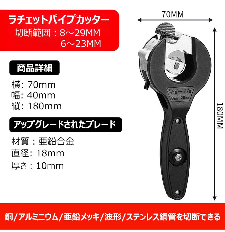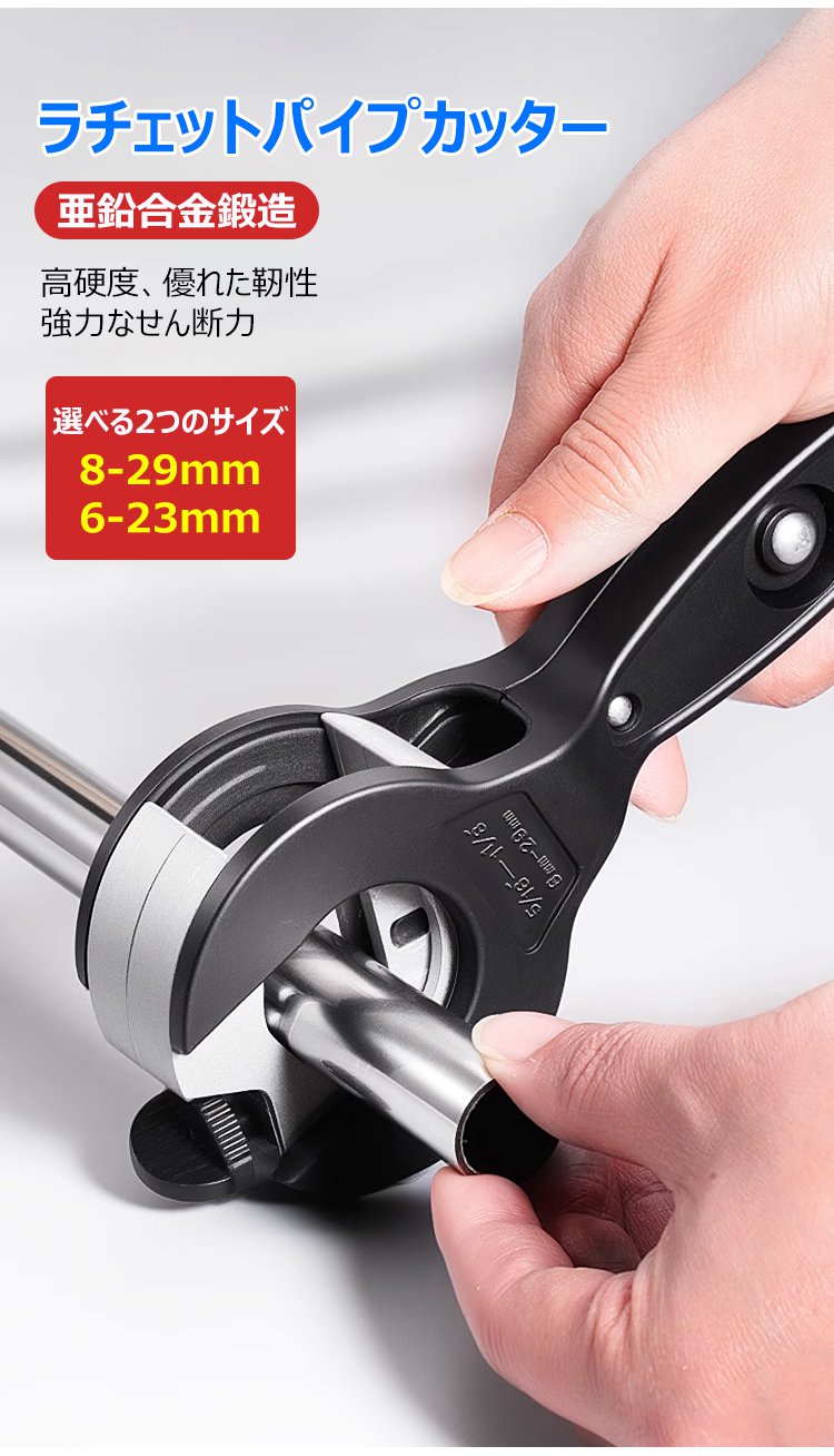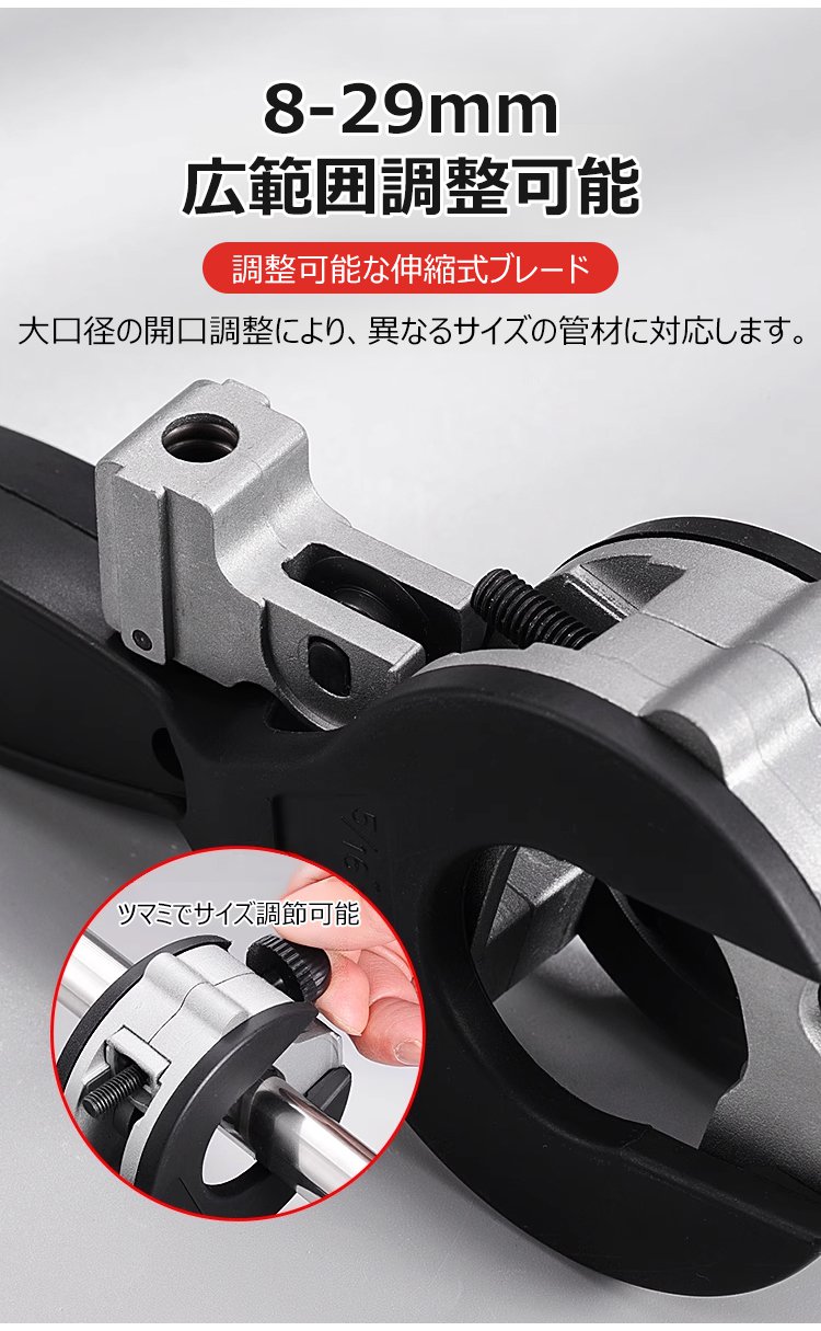 【狭いスペースでも使用可能】ラチェットパイプカッター、13Aおよび16Aのステンレス管、銅管、PVC管に適用可能