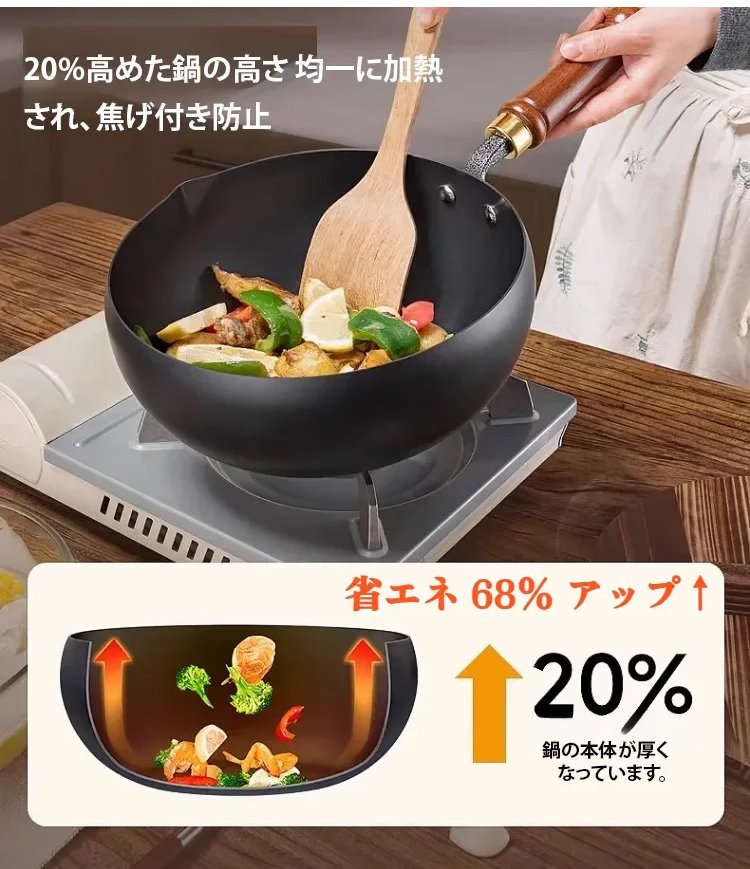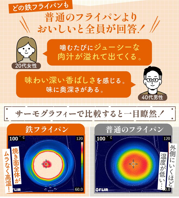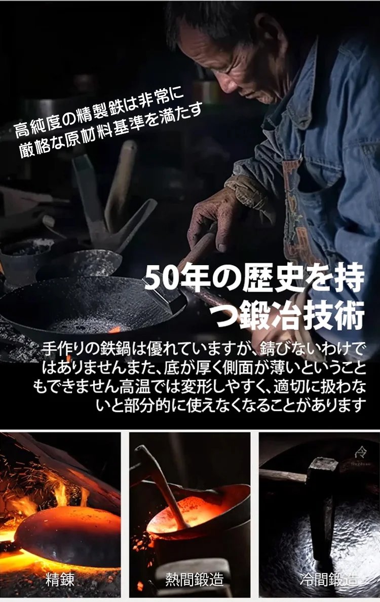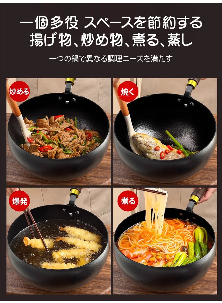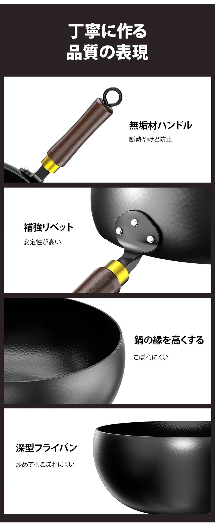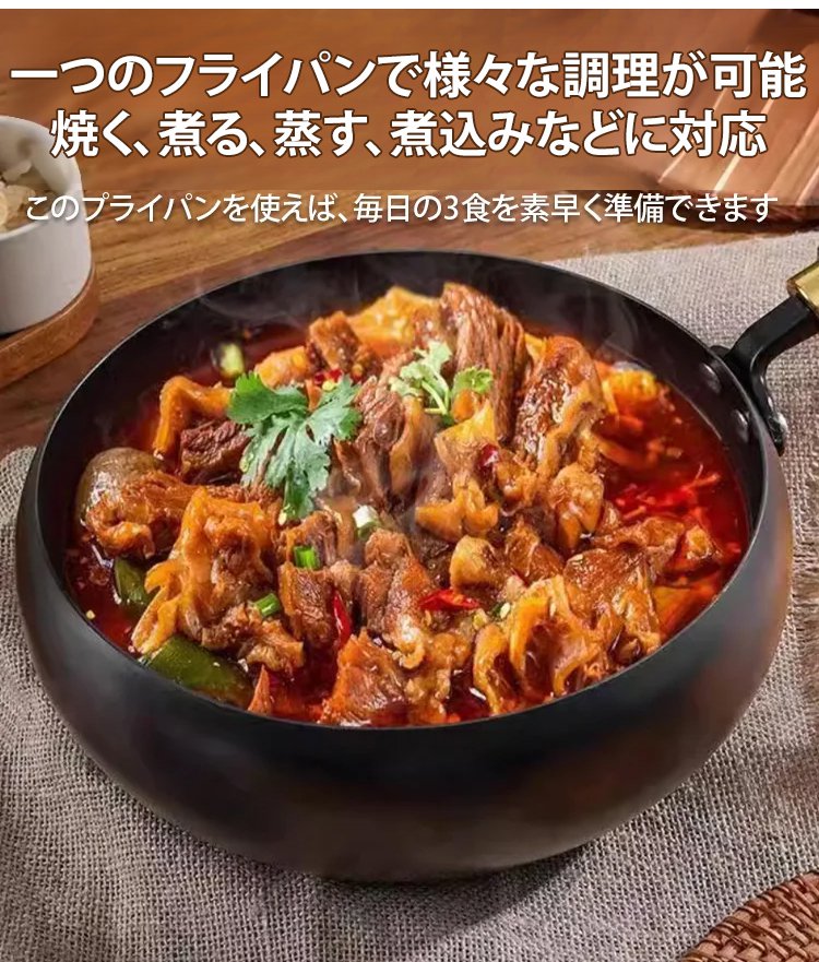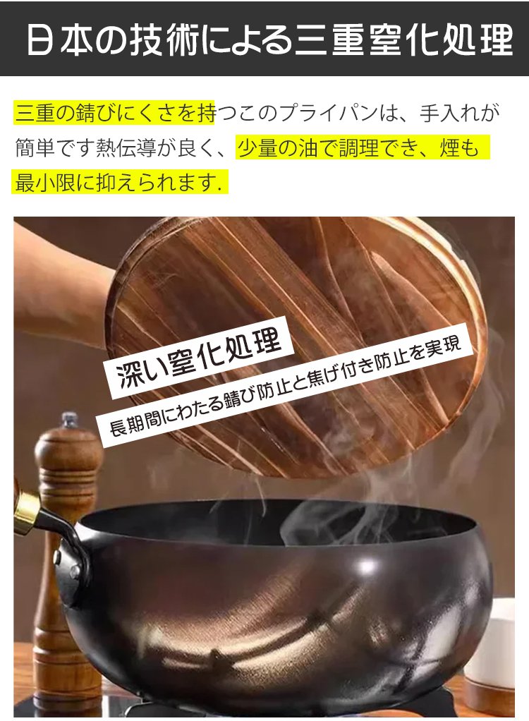 【50年間損傷や錆びなし】コーティングなし純鉄ノンスティックフライパン