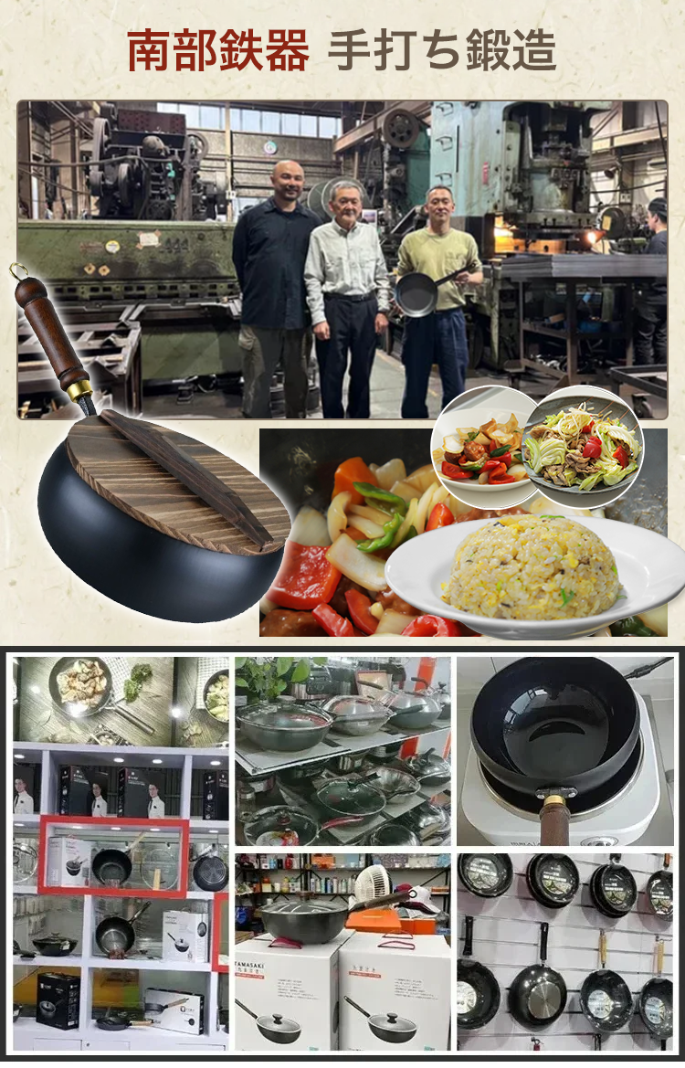 南部鉄器の職人が手造りで鍛造し、コーティングなしの純鉄製なので、食品に有害な化学物質を放出せず、人体に必要な鉄分を補給することもできます!