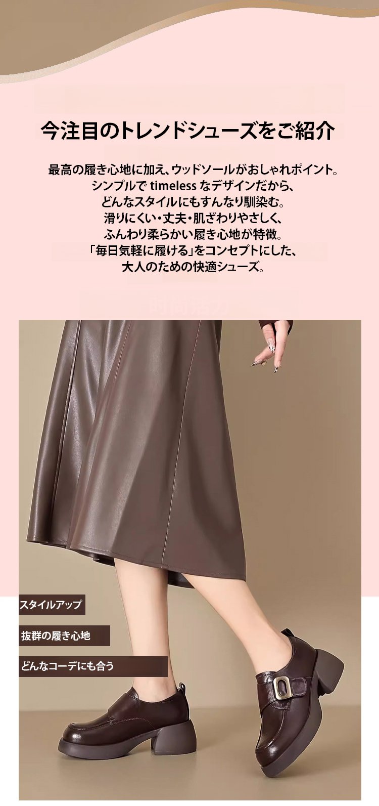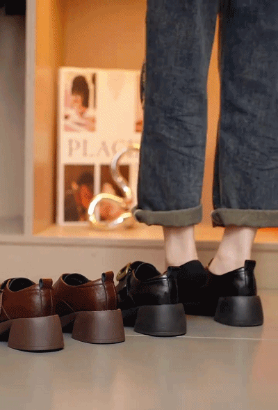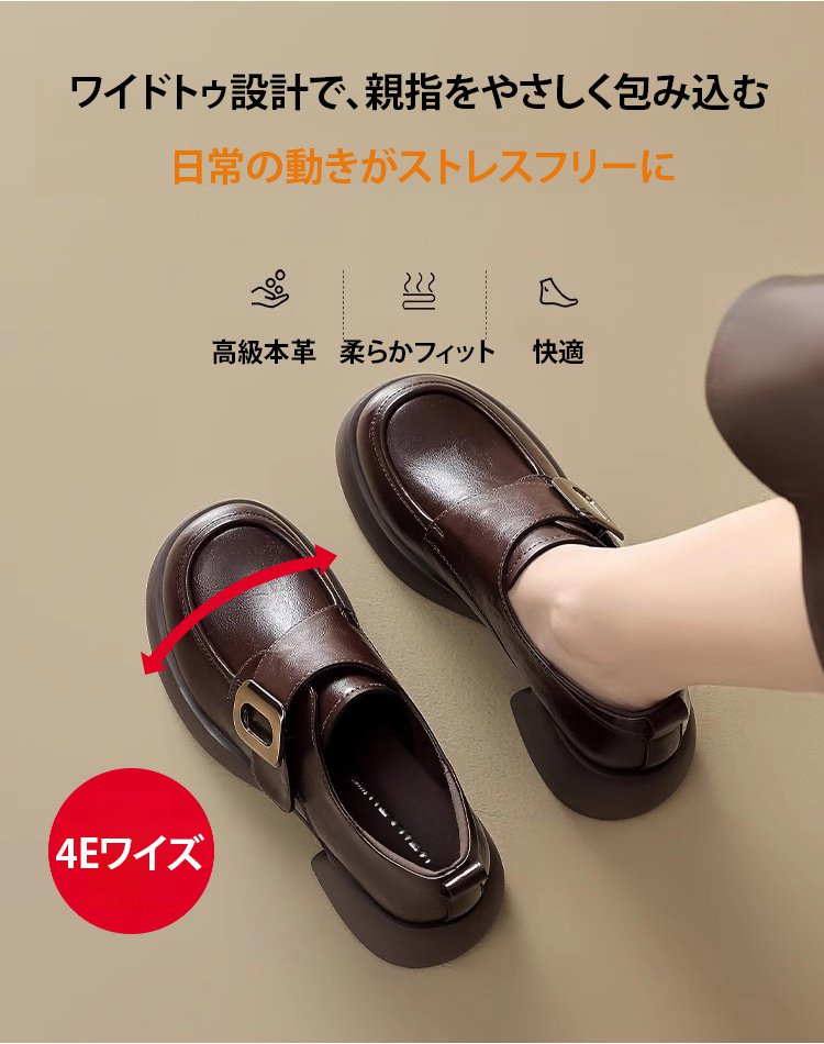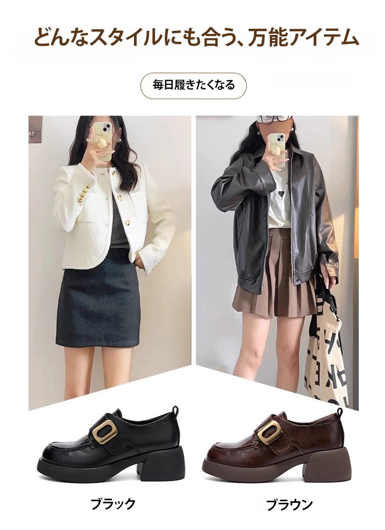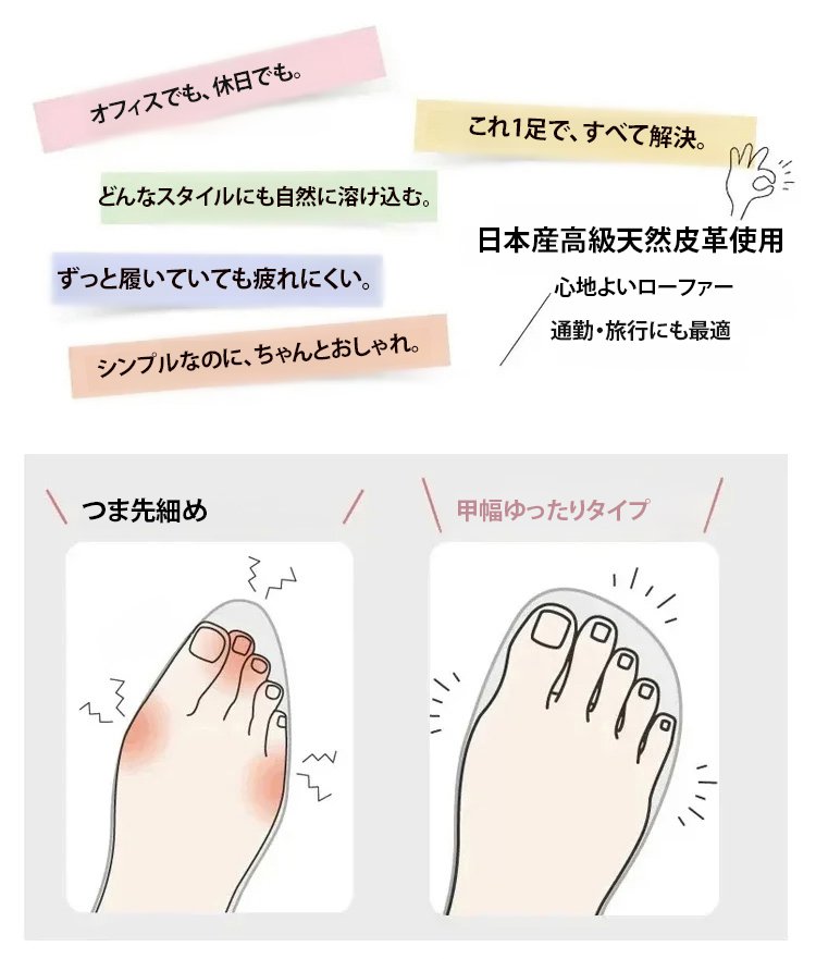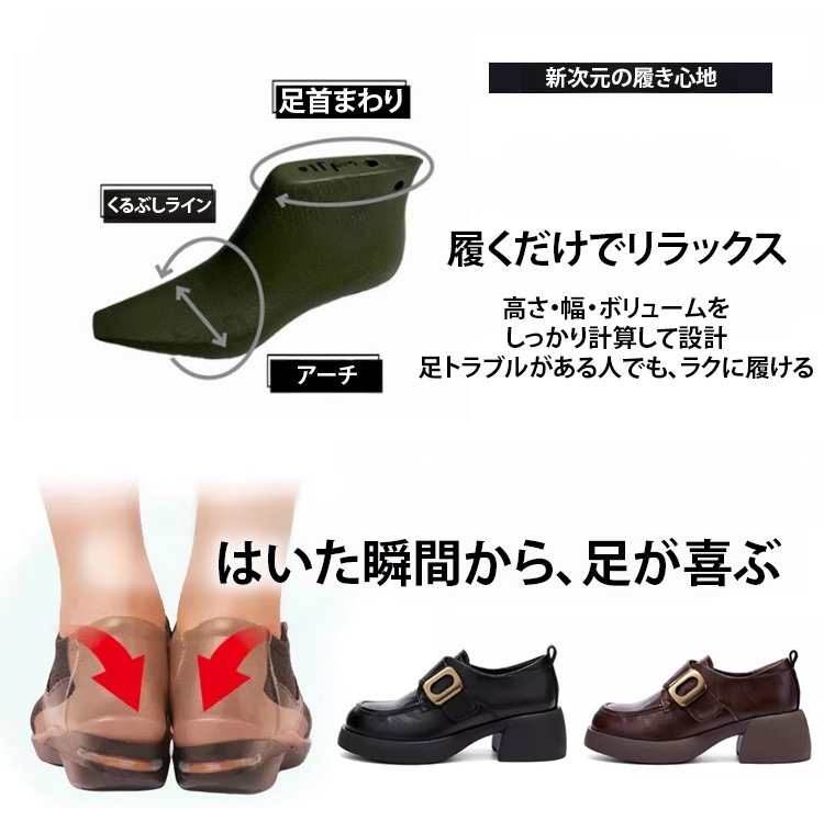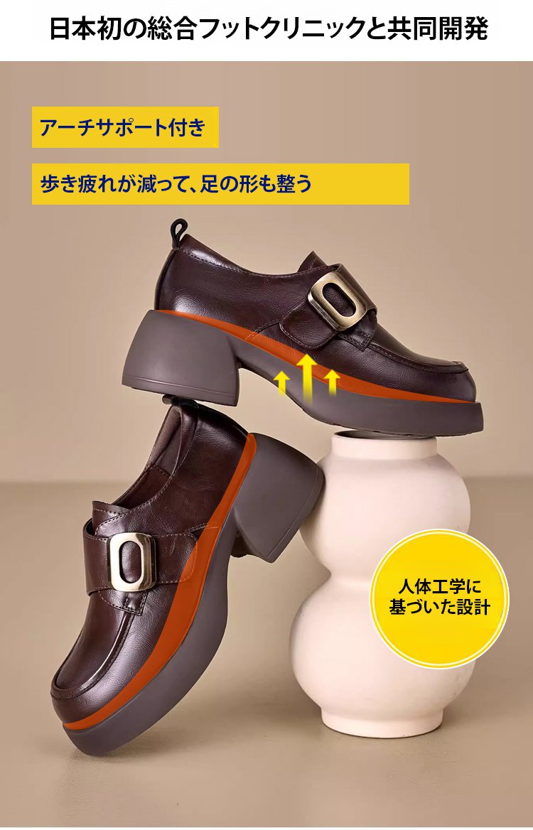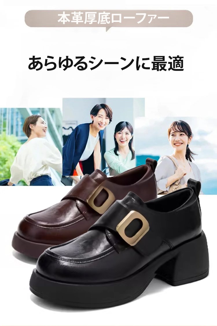 レディーススタイルアップ本革厚底ローファー