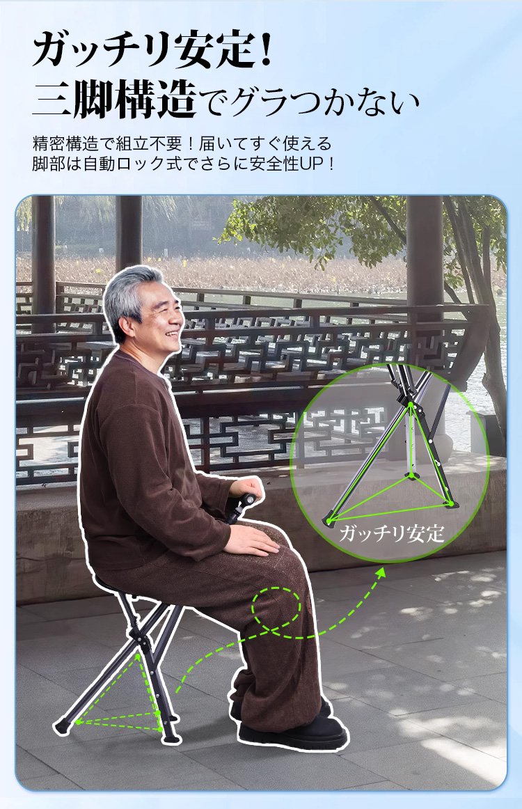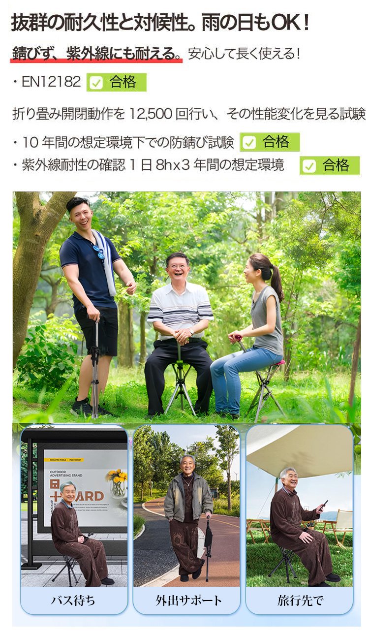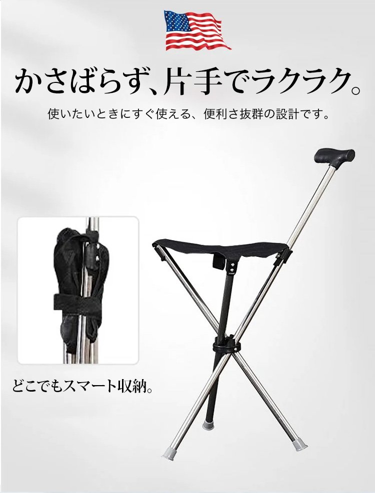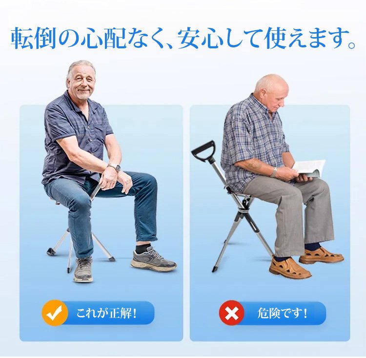 ステッキにも椅子にも一瞬でなるステッキスツール!今すぐご注文いただくと、7日間の無料試用ができます。ご満足いただけない場合はいつでも返金いたします!