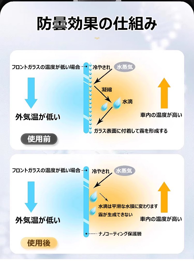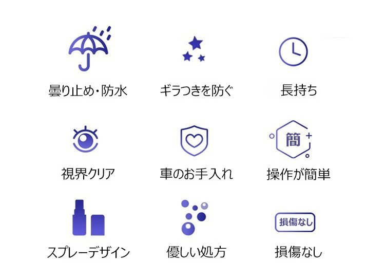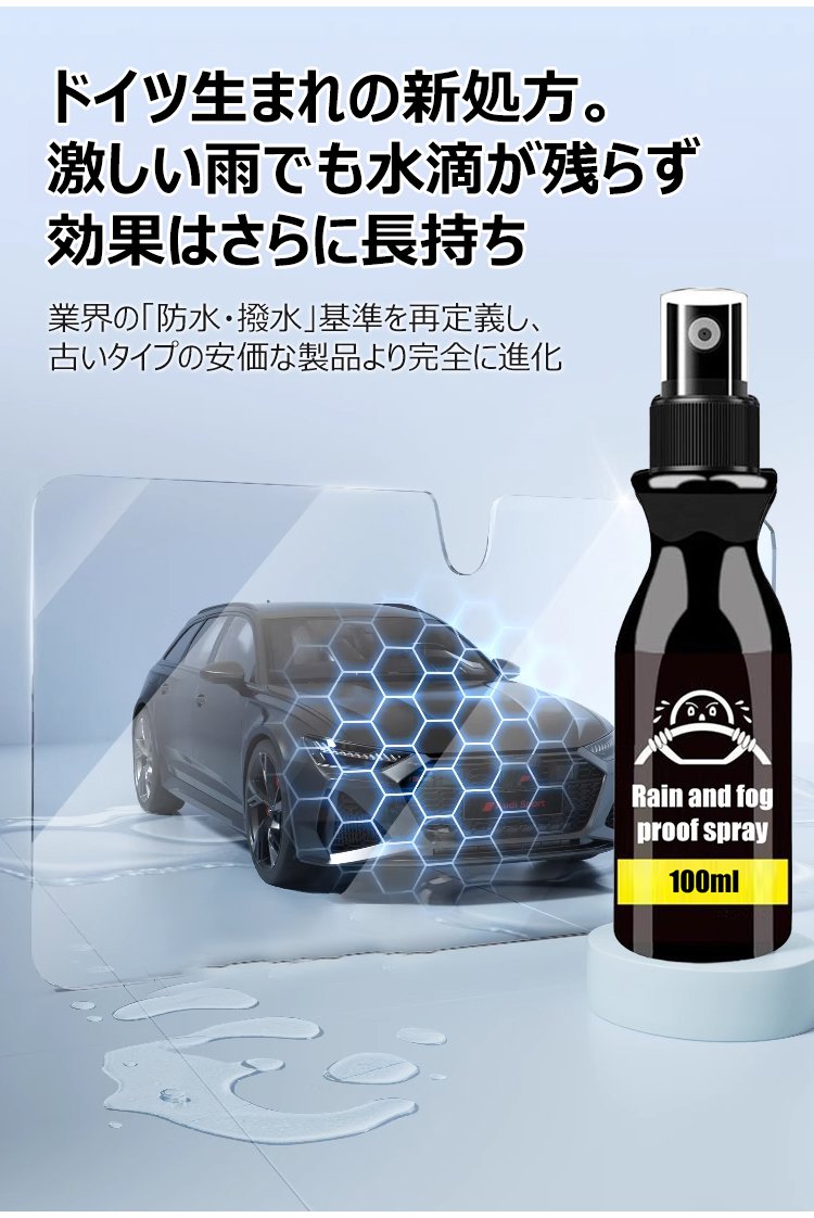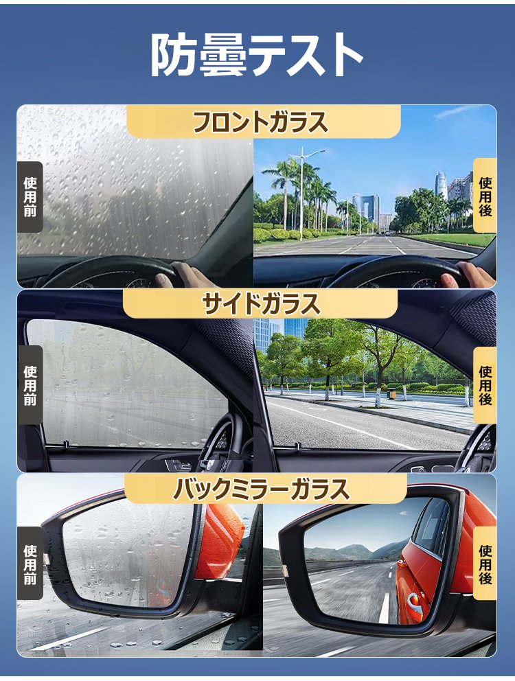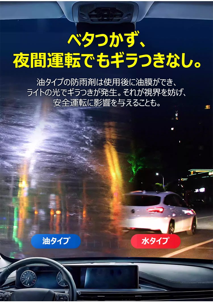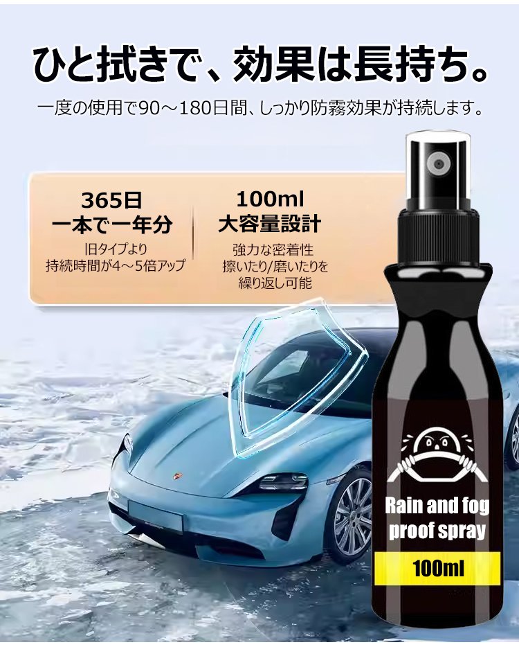1回噴くだけで180日間持続!雨の日のドライブも視界をクリアに。